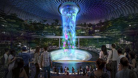“One of Jewel’s centrepiece attractions will be the Forest Valley, a huge five-storey garden filled with thousands of trees, plants, ferns and shrubs. Visitors can immerse themselves in the beauty of nature within this idyllic valley of verdant landscaping and waterfalls, and can even take a hike up the valley in air-conditioned comfort.”