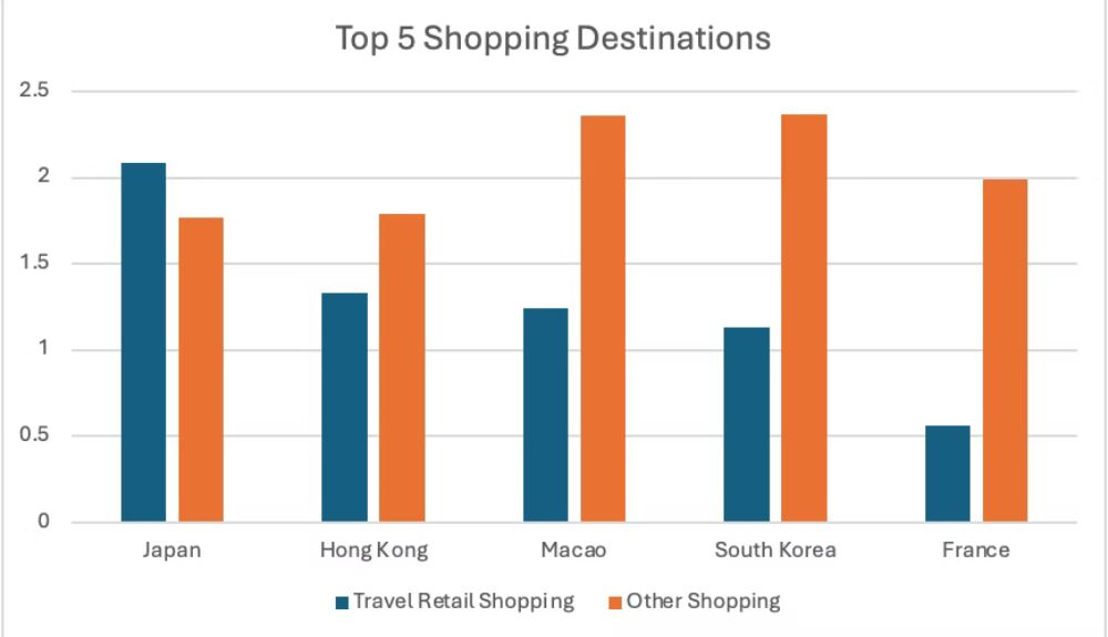 France enters the top five despite relatively modest arrival volumes, reflecting higher basket sizes associated with long-haul travel, and the importance of airport-led retail at departure and return.