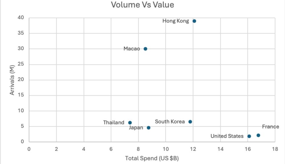 Northeast Asia dominates value creation, while Hong Kong and Macao lead in traveller volume, reflecting the scale of cross-border flows within the Greater Bay Area.