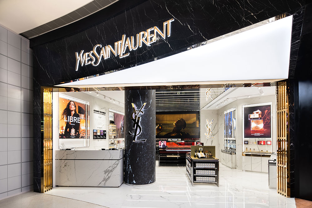 The new YSL Beauté unit is the first travel retail flagship in the Asia Pacific region to premiere the brand’s luxurious marble-look design.