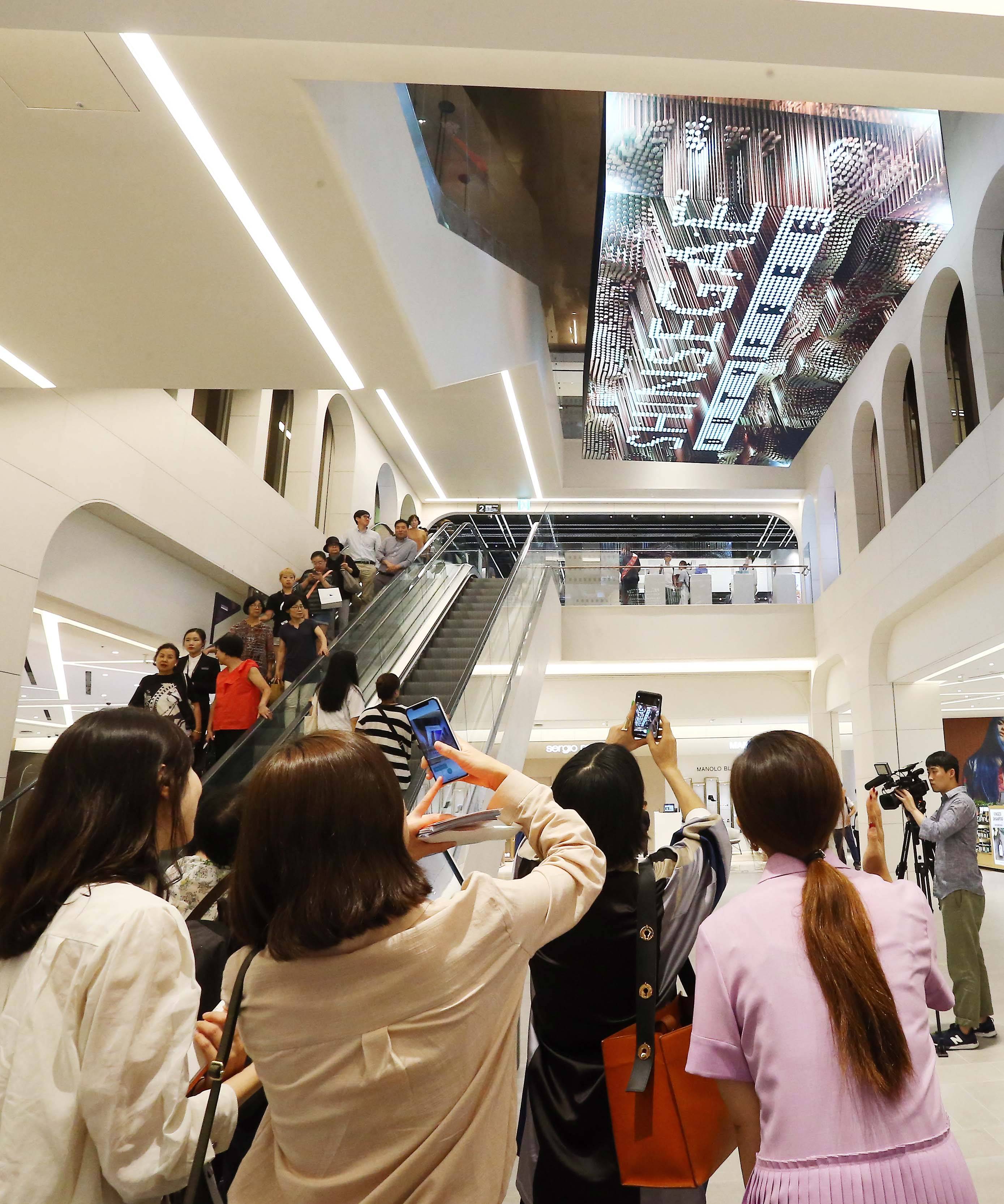 On entering the complex, customers are greeted by a 3D media facade on 7-metre ceilings. The facade displays welcome messages in various languages and Korean destination sports in 3D images.