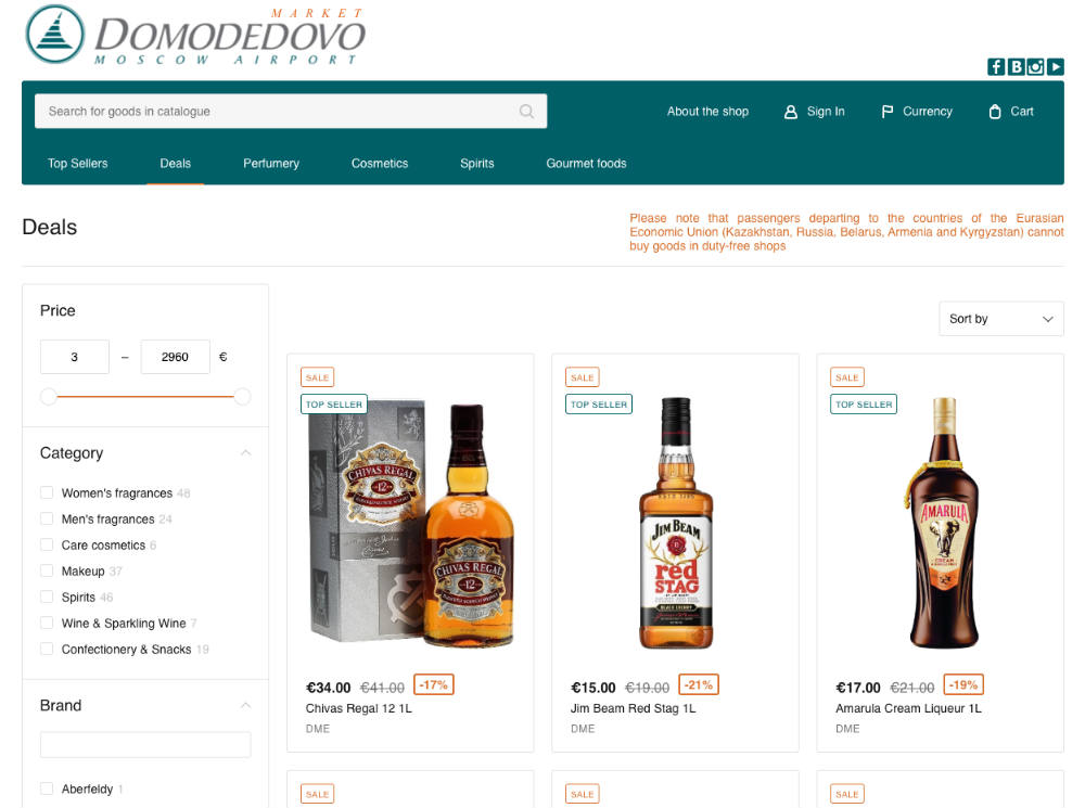 Customers can shop from more than 4,000 Heinemann Duty Free goods online for pick-up at the airport. Source: market.dme.ru.