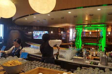 The tastefully decorated Heineken bar is located in the ‘City’ zone of the KLM Crown Lounge between concourses E and F at Amsterdam Schiphol Airport.