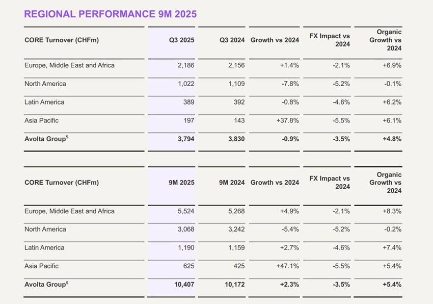 Global travel retailer Avolta achieved organic growth of +5.4%* in the nine months to September, with turnover reaching CHF10.61 billion/$13.26 billion and core turnover at CHF10.41/$13 billion. Europe, the Middle East, and Africa (EMEA) – the company’s most important region – led the way, up +8.3% to reach CHF5.52 billion/$6.9 billion.