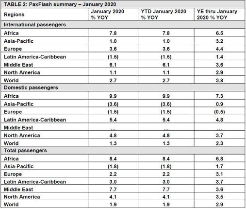 International passenger traffic worldwide rose moderately in January (+2.7%) against slightly higher growth on a 12-month rolling basis (+3.8%).