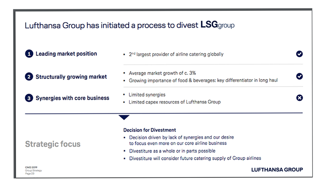 Lufthansa Group outlines the reasoning behind its decision to divest its LSG Group catering unit during a presentation at the company’s Capital Markets Day. Source: Lufthansa Group