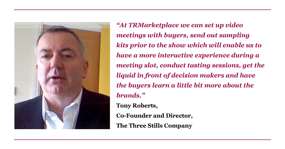 While Tony Roberts, Co-Founder and Director, The Three Stills Company said he relished the opportunity to get liquid in front of the buyers. “At TRMarketplace we can set up video meetings with buyers, send out sampling kits prior to the show which will enable us to have a more interactive experience during a meeting slot, conduct tasting sessions, get the liquid in front of decision makers and have the buyers learn a little bit more about the brands.”